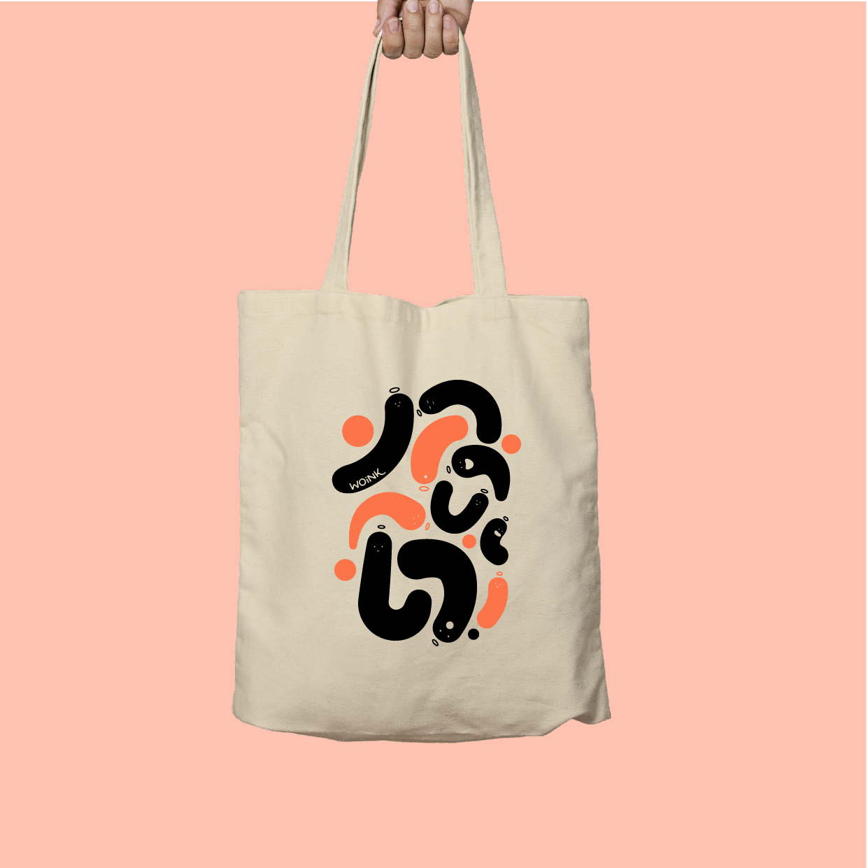 Tote bag fantôme Woink orange fluo noir